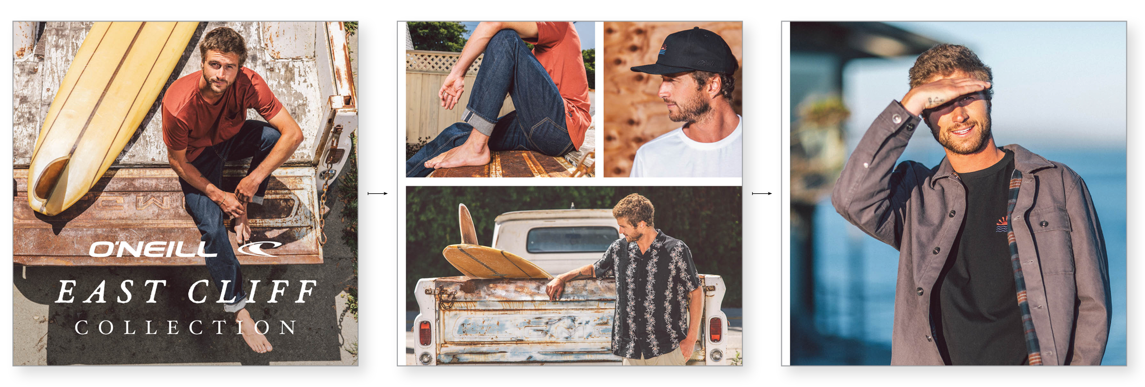 Photography has always been the backbone of O’Neill’s storytelling. Each season’s imagery serves as the foundation for every channel — from digital and social to catalog and retail. More than product shots, these photos capture the feeling of the collection: the light, texture, and emotion that define each story. The result is a cohesive visual language that connects product and lifestyle, bringing O’Neill’s seasonal narrative to life across every touchpoint.